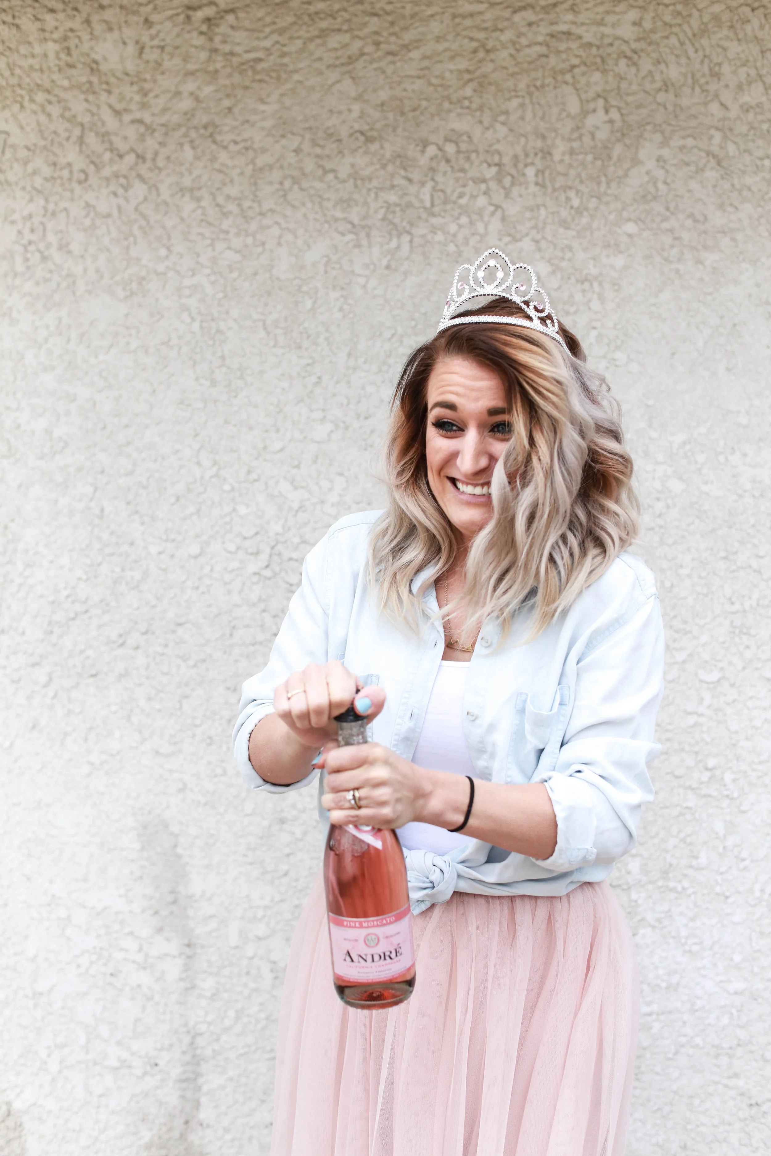 Every detail was planned down to perfection. Beautiful colors of decoration on the walls, a gorgeous backdrop and the most delicious wine and champagne. They had an outfit perfectly picked out for me from the crown to the high heels. My sisters even perfectly coordinated their own outfits to match mine.
