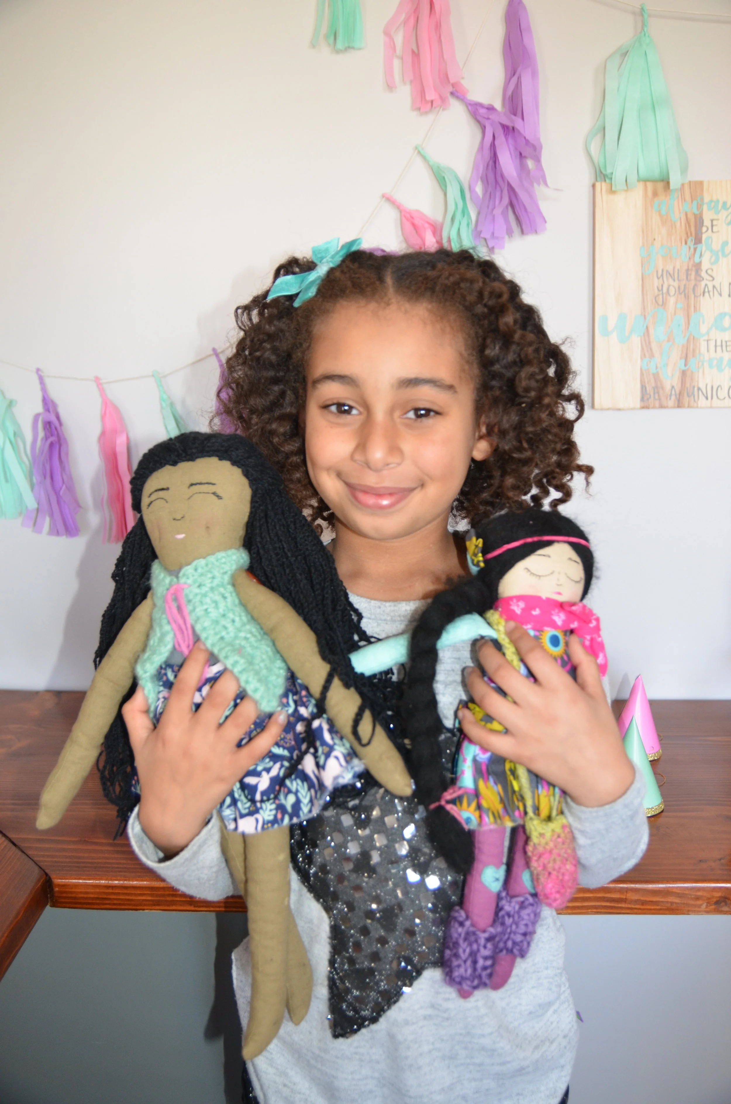 I was thrilled to have a special gift ready for Makkedah to open at her birthday party. It was these stunning handmade unicorns from Unicorn Garden Dolls. I love the detail put into these precious little dolls and how soft they are. They are built so uniquely and carefuly and I love the handmade touches. It feels so one-of-a-kind and special. And the mother and baby combo just put it over-the-top fantastic!