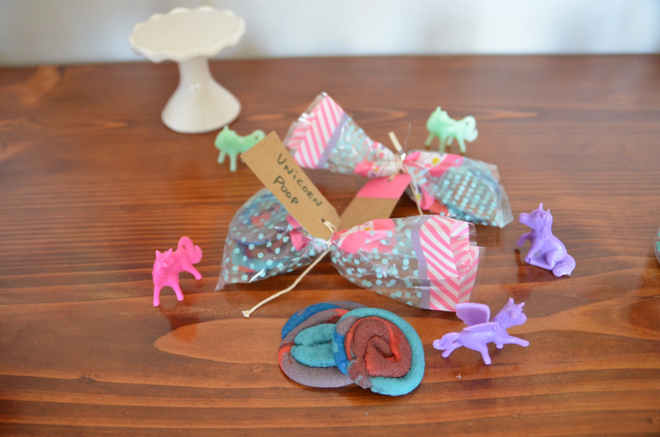 Of course, I'm the mastermind behind including "Unicorn poop." Whipped up a batch of sugar cookie dough and made these beauties with the kids. (I'm sure there is a good recipe on Pinterest) but we sent one of these bags home with every guest.