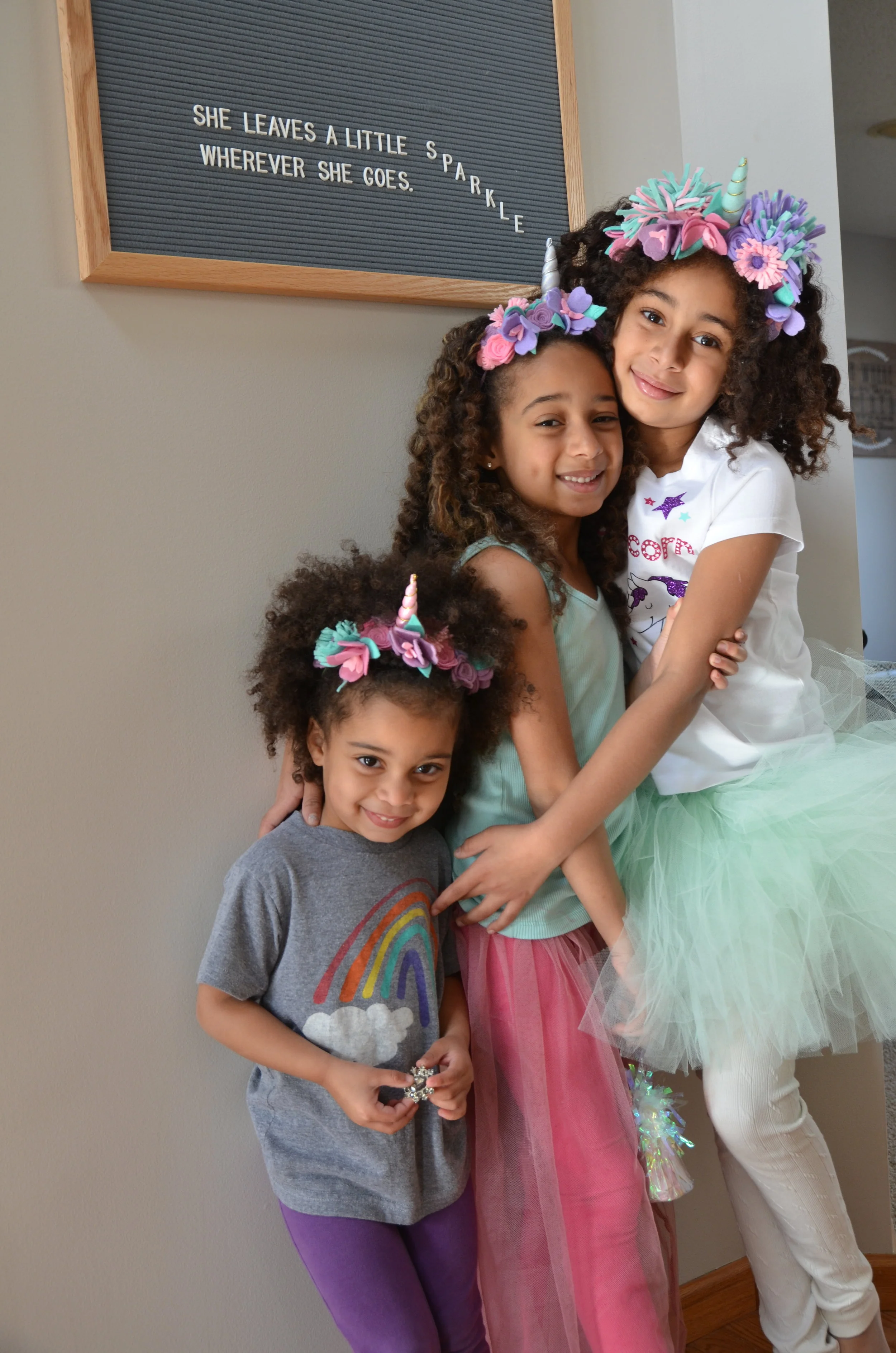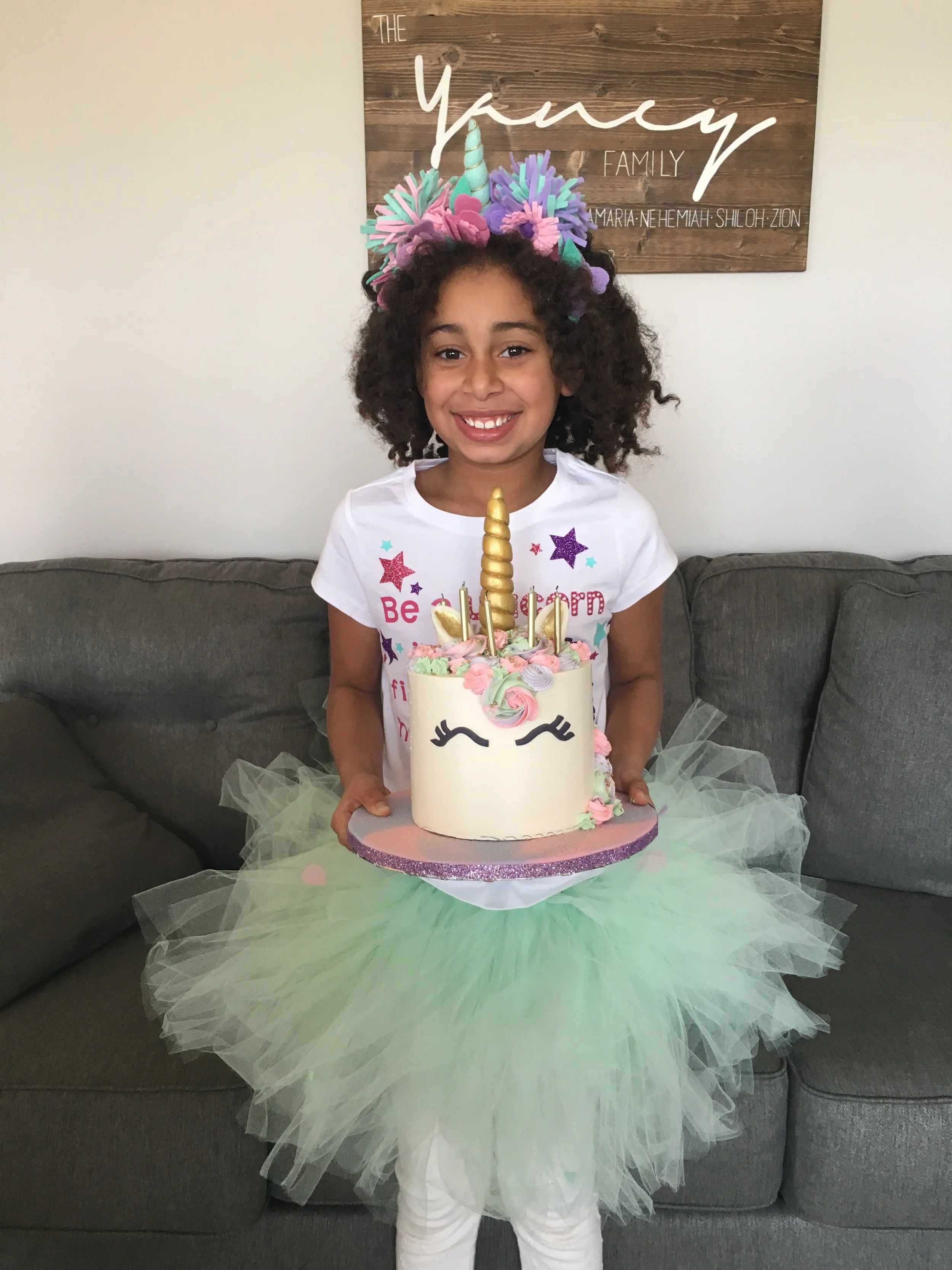 I wanted a neat crown for Makkedah to wear on her special day and Spilt Mylk was the perfect place to go! I gave her the color scheme and she went to WERK! She also created matching headbands for her sisters to wear and it was the cutest thing! Makkedah completely loved her birthday unicorn crown and it was the perfect compliment to her whole outfit! Spilt Mylk makes a ton of awesome accessories for all different occasions. I am so glad we went with Jasmine! (And our letterboard is from Lowell & Co.)