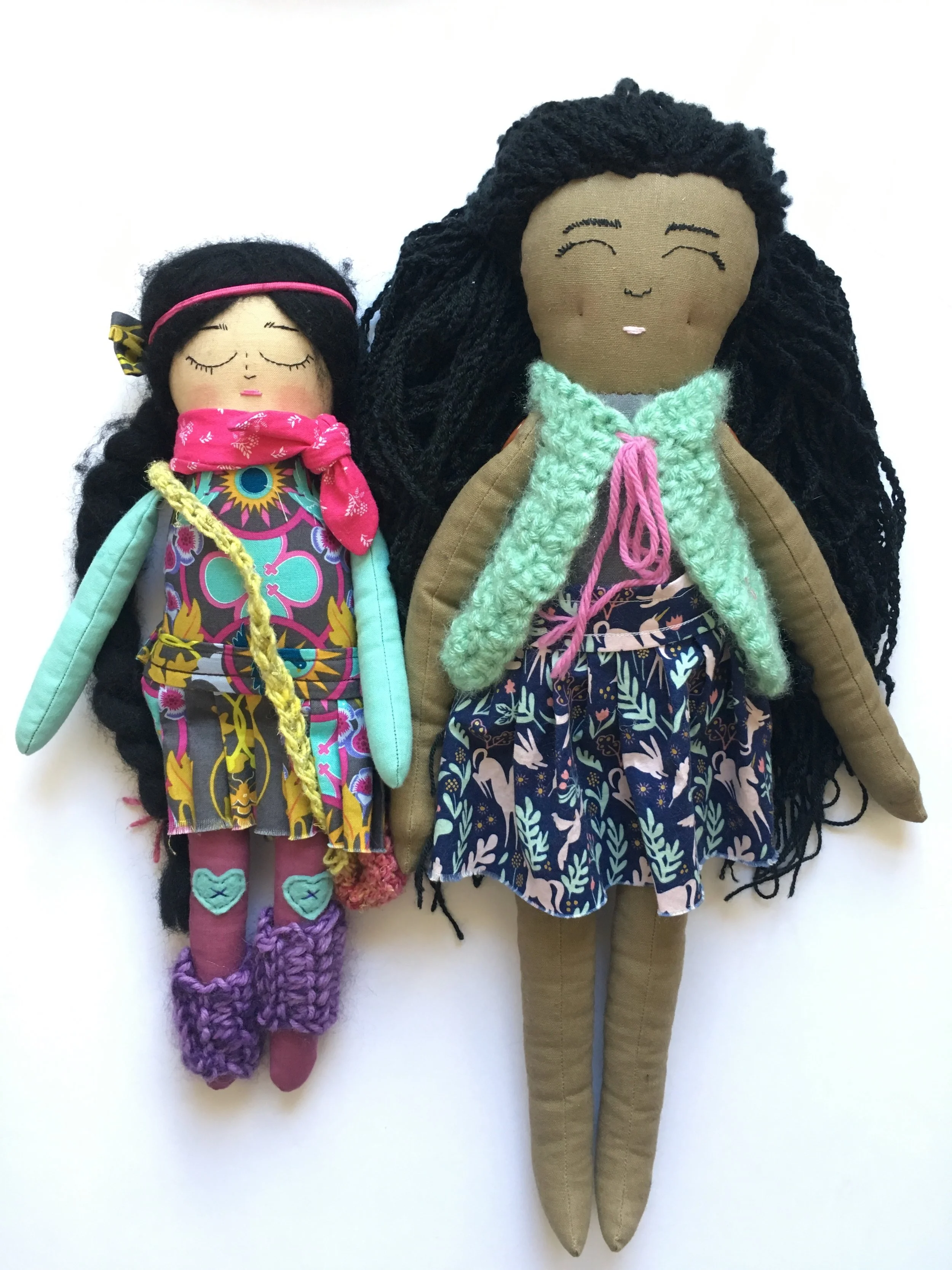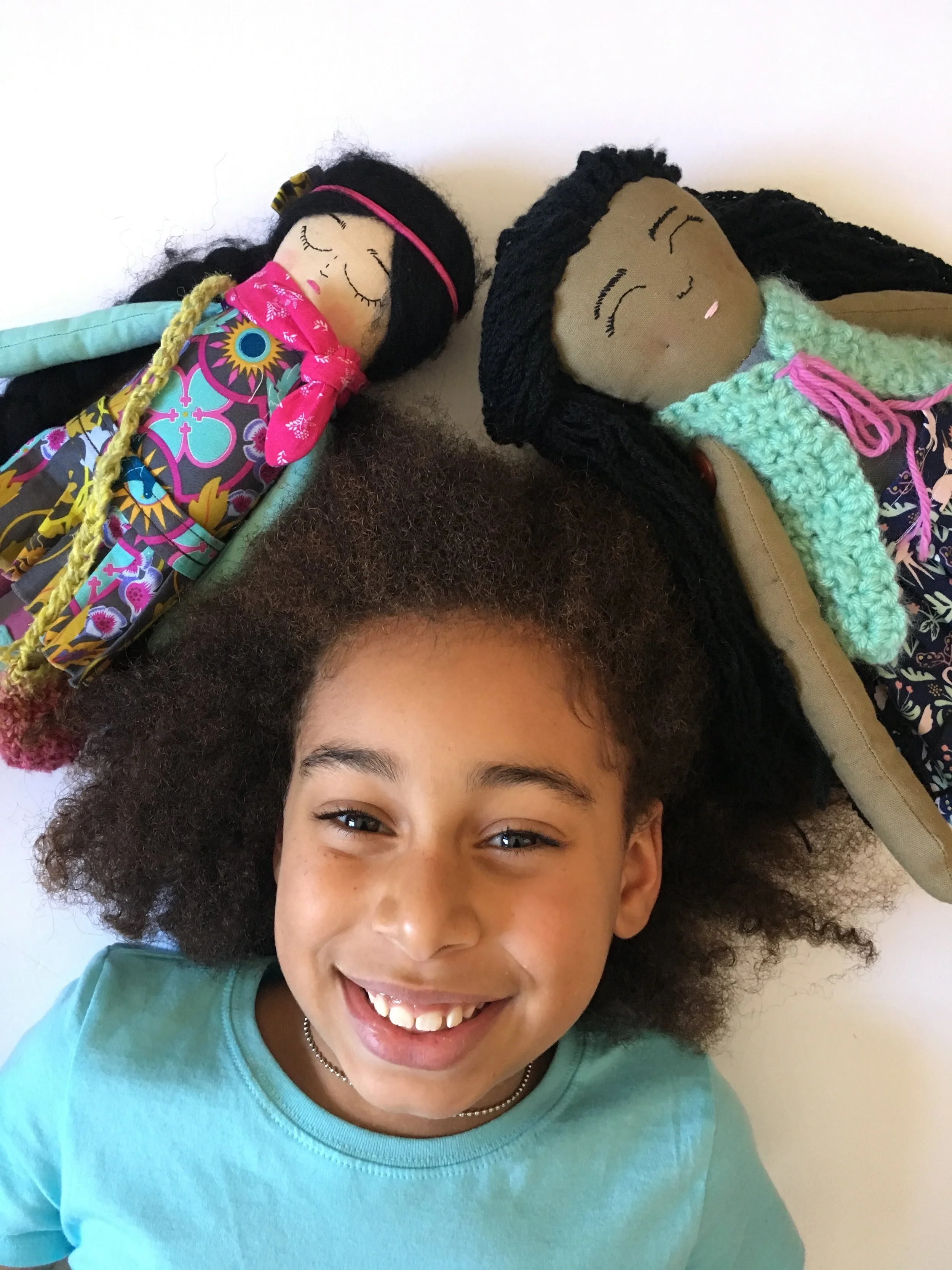 I had planned in advance the gifts I wanted to get her for her birthday and I could think of nothing better than some handmade dolls. These ones are made from the incredible Strange Folks Dolls. I was utterly blown away by the results. I had sent her some pictures of Makkedah and told her a bit about her personality- her joyful spirit, her kind heart, and asked that she create a doll to look like her. The doll on the left is what she came up with. And the doll on the right is her precious friend that got to join in on the fun. Kristin makes her dolls with "coffee stained linen/cotton, beautiful vintage buttons, wool stuffing, crocheted clothing, and simple embroidery in a "sketched" style." When the package arrived in the mail, I kid you not, I cried. I was so touched with the love and care she put into creating these dolls for my daughter. Every little details absolutely floored me. I could not wait to give these dolls to Makkedah- more on that later.